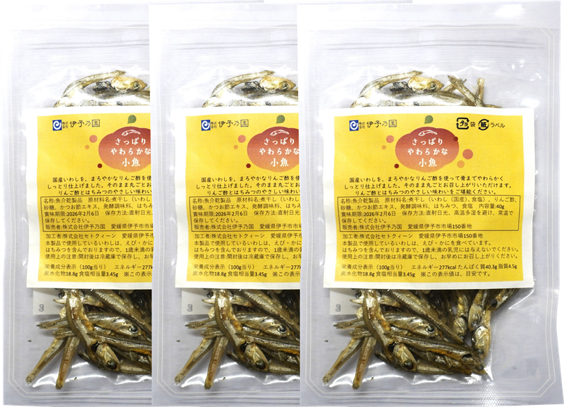 原材料名 | 煮干し(いわし(国産)、食塩)、りんご酢、砂糖、かつお節エキス、発酵調味料、はちみつ、食塩 |