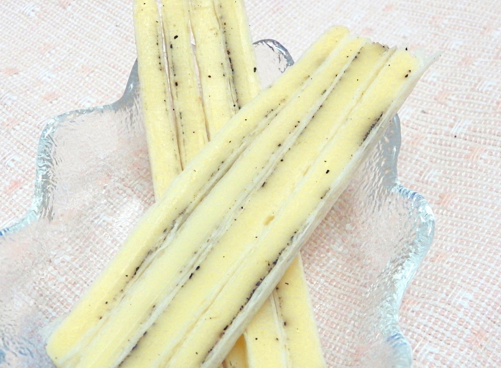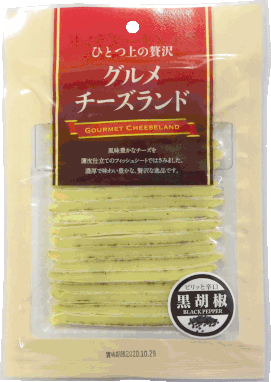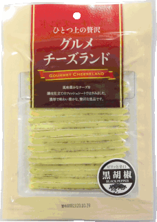 おさかなでつくられたシートで黒こしょうをきかせたチーズを挟みました。