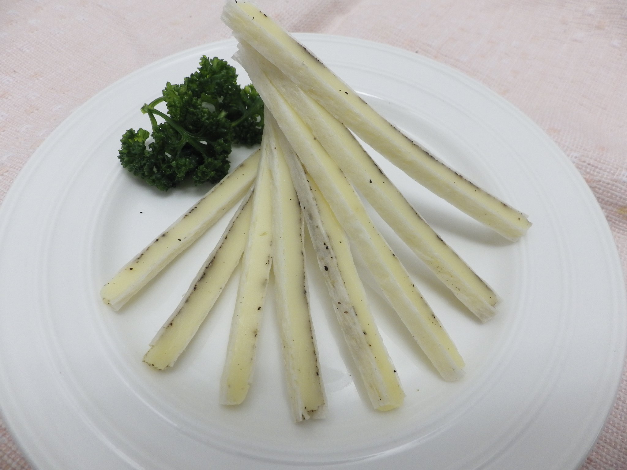 【ぐるめチーズサンド 黒胡椒】 乳等を主要原料とする食品(ナチュラルチーズ、植物油脂、食塩)(国内製造)、魚肉すり身加工品(魚肉すり身、植物蛋白(大豆・小麦を含む)、その他)、黒胡椒/ソルビット、カゼインNa、安定剤(加工澱粉、増粘多糖類)、加工澱粉、酸味料、乳化剤、トレハロース、調味料(アミノ酸等)、香料、カロチノイド色素