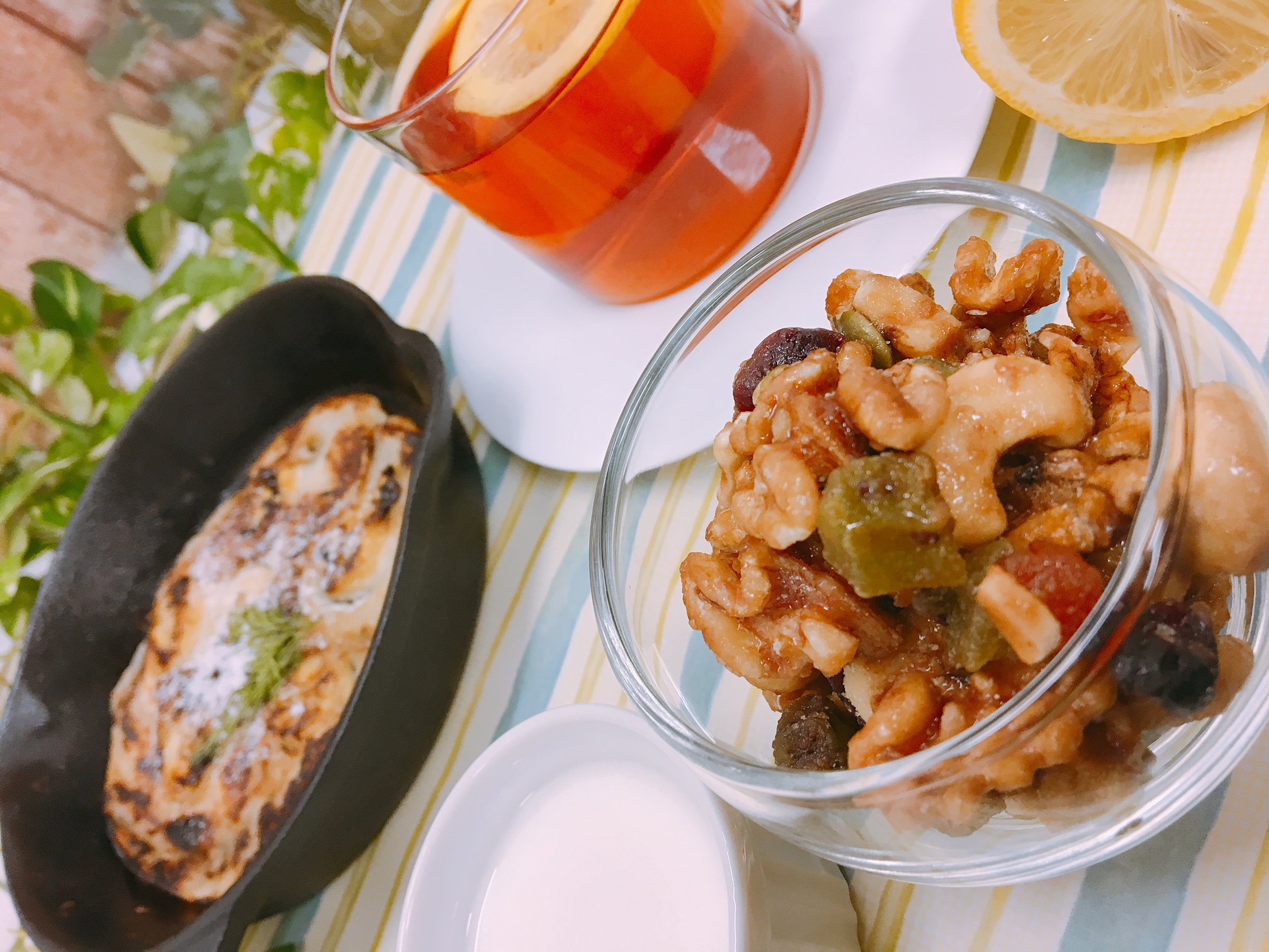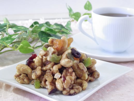 「多くの回数を食べる」ということは、「飽きさせないことが必要」と考え、いろいろなナッツ類やドライフルーツ類をミックスすることと致しました。また「味付加工」は、弊社が永年小魚加工で培ってまいりました「味付乾燥技術」が応用できるのではないかと考えました。