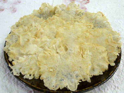 味の濃い「いたや貝(貝柱)」を、特殊な温度と圧力で花びらのように、一枚一枚丁寧に焼き上げました。