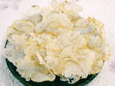 しっかり味がついている「えび」を、特殊な温度と圧力で花びらのように、一枚一枚丁寧に焼き上げました。